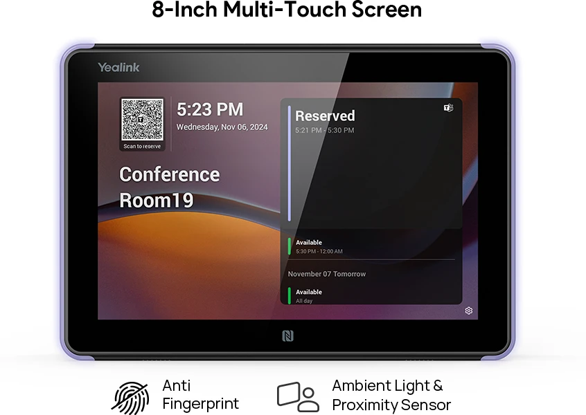 Yealink RoomPanel E2 là bảng điều khiển đặt lịch phòng họp tất cả trong một 8 inch chạy Android 13 và đi kèm với đèn nền LED RGB có thể lập trình đầy đủ để giao tiếp trạng thái phòng ngay lập tức. Nó bao gồm khả năng cảm ứng đa điểm, Wi-Fi 802.11ac, Bluetooth 5.0, đầu đọc NFC/RFID tích hợp, mảng micrô và loa nâng cao để đáp ứng mọi nhu cầu của không gian làm việc hiện đại. Ngoài ra, được trang bị Power-over-Ethernet và nhiều giá đỡ, Yealink RoomPanel E2 có thể dễ dàng lắp trên mọi bề mặt.