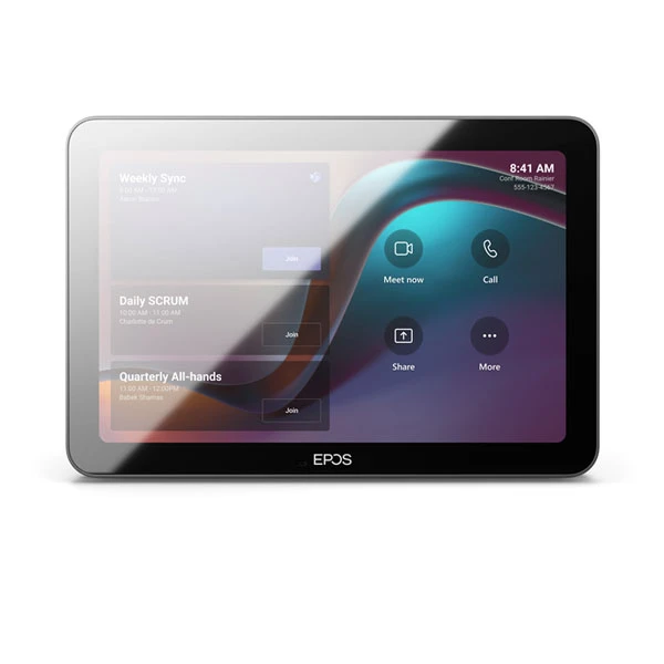 Sử dụng máy tính bảng làm bộ điều khiển phòng họp, nó dễ dàng ghép nối với các giải pháp hội nghị truyền hình EPOS, mang đến các cuộc họp không có rào cản. Sử dụng nó làm bảng lập lịch trình treo tường, bạn có thể xem vị trí và chi tiết cuộc họp cũng như đặt chỗ cho các cuộc họp có sẵn ngay tại chỗ.