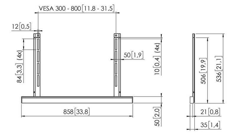 Các dải được gắn đơn giản vào thiết bị nâng màn hình có động cơ cùng với các dải VESA khi gắn vào màn hình. Gắn phụ kiện bên trên hoặc bên dưới màn hình theo yêu cầu.