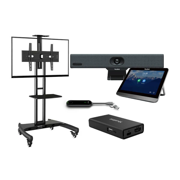 Bộ thiết bị họp trực tuyến VTE DD-01 với bộ 5 thiết bị bao gồm: Yealink MeetingBar A10, bảng điều khiển cảm ứng cộng tác Yealink CTP18, thiết bị trình chiếu không dây Yealink WPP30, giá treo di động + Tivi 50”, bộ kết nối – chia sẻ dữ liệu VCH51. Đây là gói giải pháp phù hợp cho phòng khám trực tuyến, lâm sàng, bộ thiết bị di động linh hoạt, mang đến trải nghiệm hình ảnh và âm thanh chuyên nghiệp, chất lượng 4K.