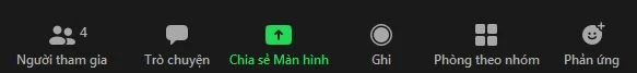 - Ở giao diện chính sau khi bạn share màn hình, trên thanh công cụ bạn nhấn chọn biểu tượng hình người Manage Participants (Người tham gia) như hình minh họa bên dưới.