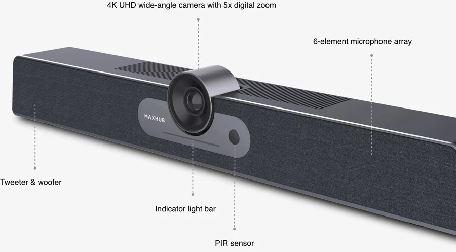 Đối với các cuộc họp trong phòng họp nhóm từ 2 đến 8 người, Maxhub UC S07 có các khả năng tích hợp đặc biệt trong thanh camera USB nhỏ gọn.