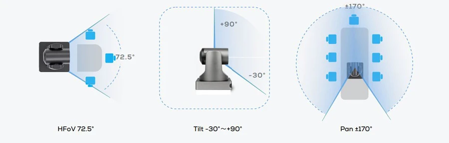 Maxhub UC P15 tự động điều chỉnh tốc độ xoay và nghiêng dựa trên mức zoom, với độ chính xác đặt trước 0,1° để có hình ảnh chính xác hơn. Góc nghiêng 90° của máy ảnh tăng cường hơn nữa phạm vi phủ sóng và hỗ trợ quan sát từ trên cao.