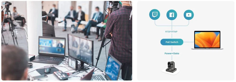 Điều chỉnh hoạt động của camera dựa trên môi trường với nhiều tùy chọn điều khiển bao gồm giao diện web, phần mềm & USB, mạng IP, điều khiển nối tiếp và điều khiển từ xa hồng ngoại.