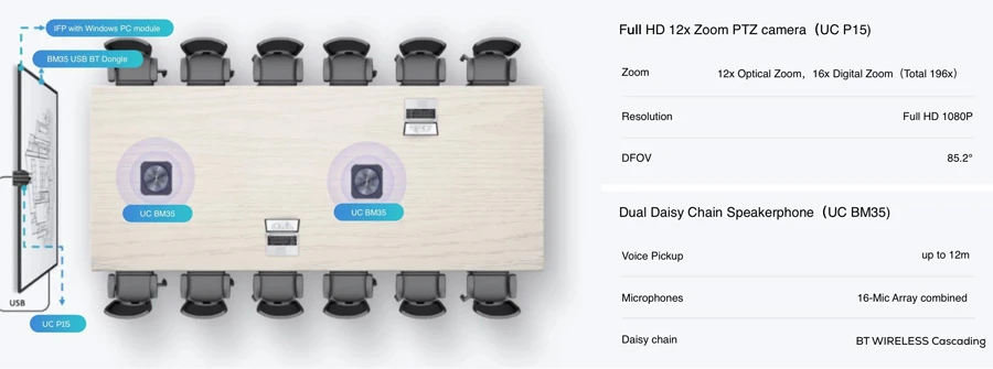 Giải pháp đi kèm với UC BM35 cho phép triển khai và cộng tác trong nhiều không gian rộng lớn.