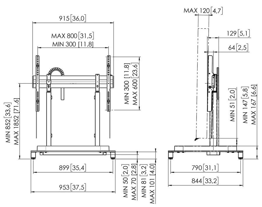 - Phù hợp với màn hình có kích thước lên tới 86″ và tối đa 120 kg