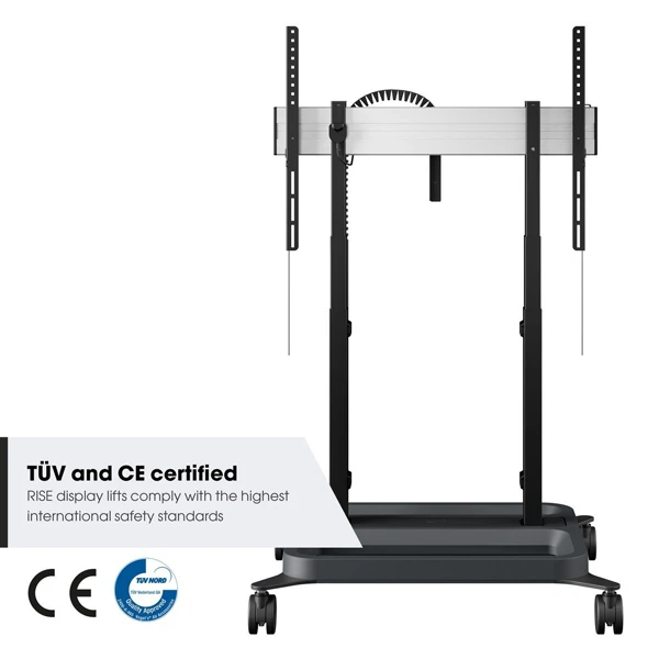 Tất cả các xe nâng màn hình có động cơ của RISE đều có thể được tùy chỉnh bằng các phụ kiện như bộ bảng trắng, khay máy tính xách tay, khay camera hội nghị truyền hình, giá treo thanh âm thanh hoặc thiết bị lưu trữ ẩn.