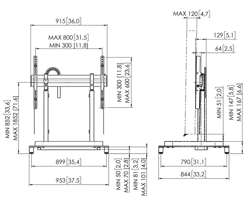 - Phù hợp với màn hình có kích thước lên tới 86″ và tối đa 120 kg