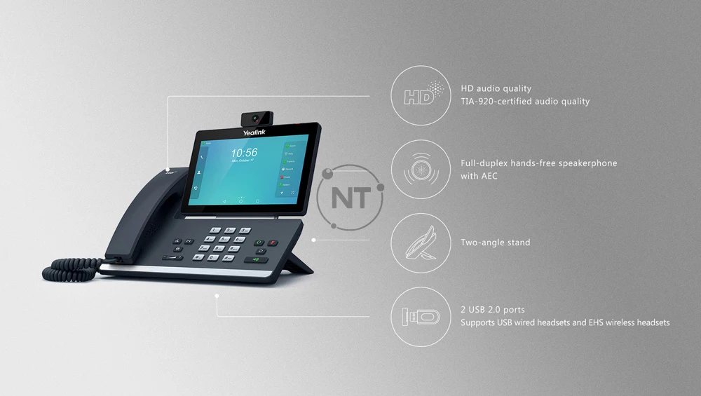 Yealink SIP-T58V bao gồm phiên bản mới nhất của công nghệ Yealink Optimal HD Voice và hiện hỗ trợ codec Opus, giúp tối đa hóa hiệu suất âm thanh của thiết bị cầm tay, tai nghe và đặc biệt là loa ngoài của điện thoại. Và thiết bị cầm tay tương thích với máy trợ thính (HAC) của nó sẽ giúp người bị khiếm thính nghe giọng nói rõ ràng hơn. Camera HD hai megapixel linh hoạt, có thể tháo rời CAM50 được thiết kế đặc biệt cho các cuộc trò chuyện trực diện thời gian thực đáng chú ý.