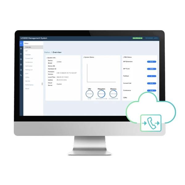 Dinstar UC8000 là một giải pháp SIP / IP cấp nhà cung cấp dịch vụ rất mạnh mẽ với cơ chế sẵn sàng cao, hỗ trợ các tính năng gọi IPPBX khác nhau cho cấp doanh nghiệp và khả năng tương thích SIP / IMS tốt, và bằng cách thêm nhiều cổng VoIP để trở thành một ứng dụng đầy đủ tính năng và tiết kiệm chi phí Giải pháp IPPBX và cung cấp giải pháp tự động cung cấp và không chạm để bảo trì và quản lý điện thoại SIP.