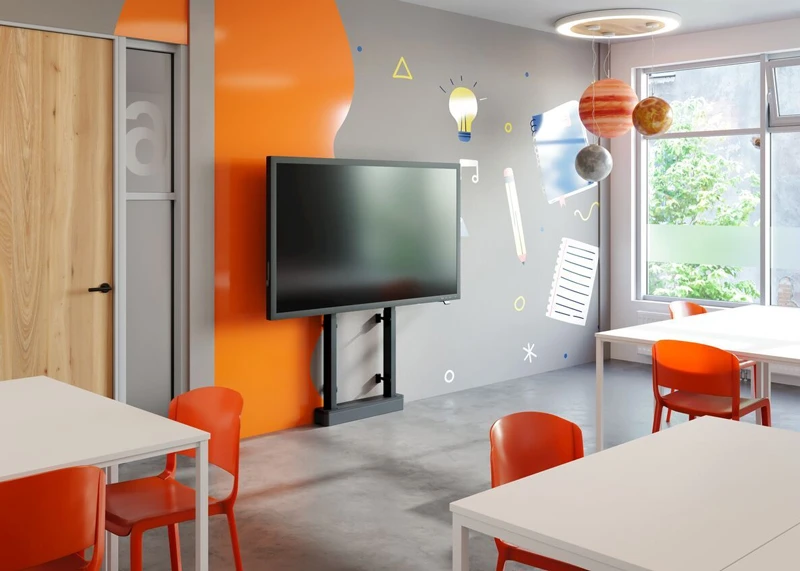 Xe nâng màn hình có động cơ RISE của Vogel có thể được mở rộng bằng các phụ kiện khác, chẳng hạn như bộ bảng trắng. Chúng có các kích cỡ 65″, 75″ và 86″ và được tùy chỉnh để sử dụng với giải pháp sàn-tường, xe đẩy hoặc giá đỡ trên sàn.