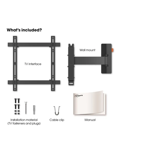 | Có gì trong hộp | Giá treo tường, Kẹp cáp, Bộ dụng cụ cố định TV, Hướng dẫn lắp đặt, Ứng dụng Hướng dẫn gắn TV, Bộ giá treo tường |