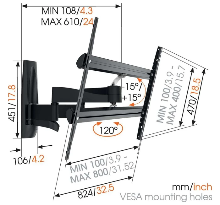 Kích thước giá treo tường Vogel’s WALL 3450