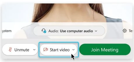 Trước khi tham gia hoặc bắt đầu cuộc họp, bạn có thể chọn cài đặt bạn sử dụng cho video trong cuộc họp.