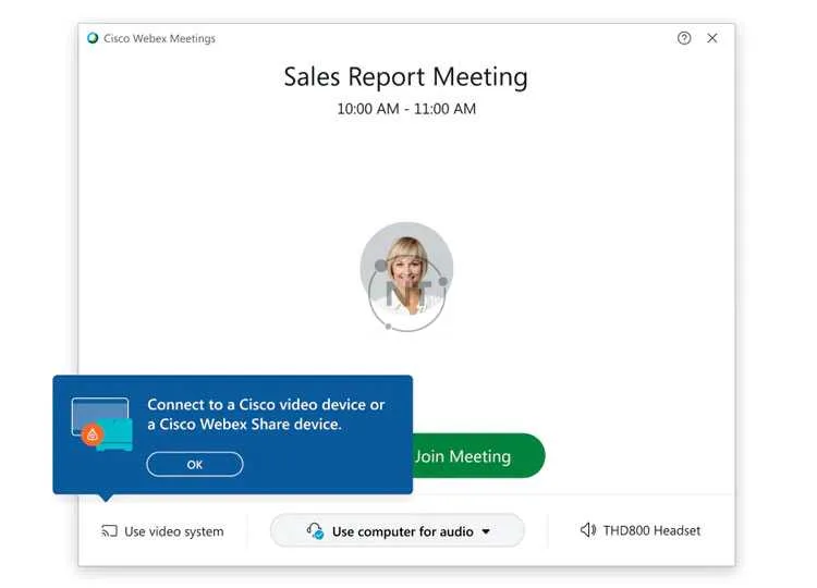 Ứng dụng sẽ tự động kết nối với hệ thống video của bạn hoặc sẽ gọi đến thiết bị của bạn khi bạn chọn Join meeting.