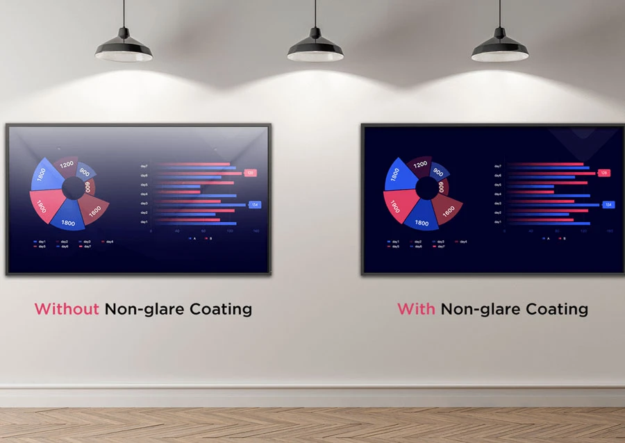 Lớp phủ chống chói của chúng tôi mang lại tầm nhìn rõ ràng, ngay cả trong điều kiện ngoài trời sáng, đồng thời mức độ hiển thị sương mù tăng lên giúp cải thiện khả năng đọc văn bản.