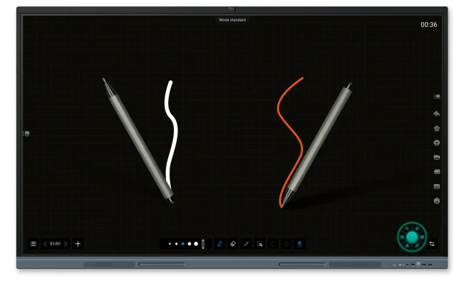 Hiển thị 2 màu viết đồng thời trong tình huống dùng 2 bút. Hỗ trợ xóa bằng cử chỉ, phóng to/thu nhỏ hai điểm, chuyển vùng kéo và thả và các thao tác thuận tiện khác.