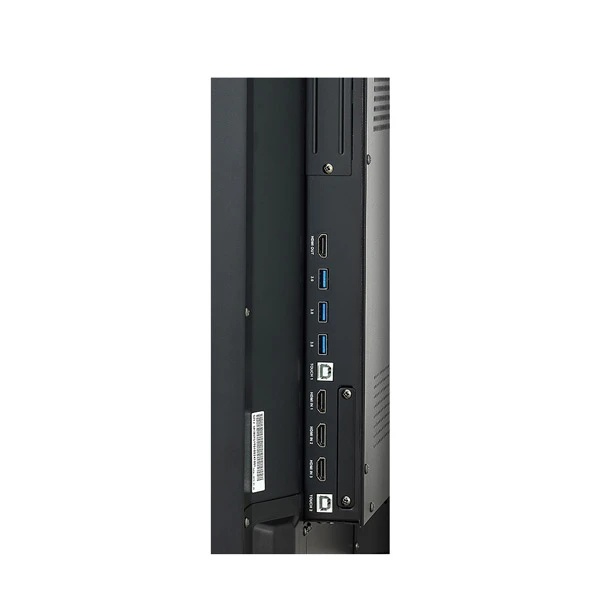- Cổng kết nối: HDMI (3), RGB / Audio In, RS232C In,USB 2.0 (3, Phía trước: 2ea, Phía đáy: 1ea Chỉ để cập nhật phần mềm), USB 3.0 (3), Touch Out (USB2.0,Loại B) (2), HDMI (1), Optical Output / Audio Out