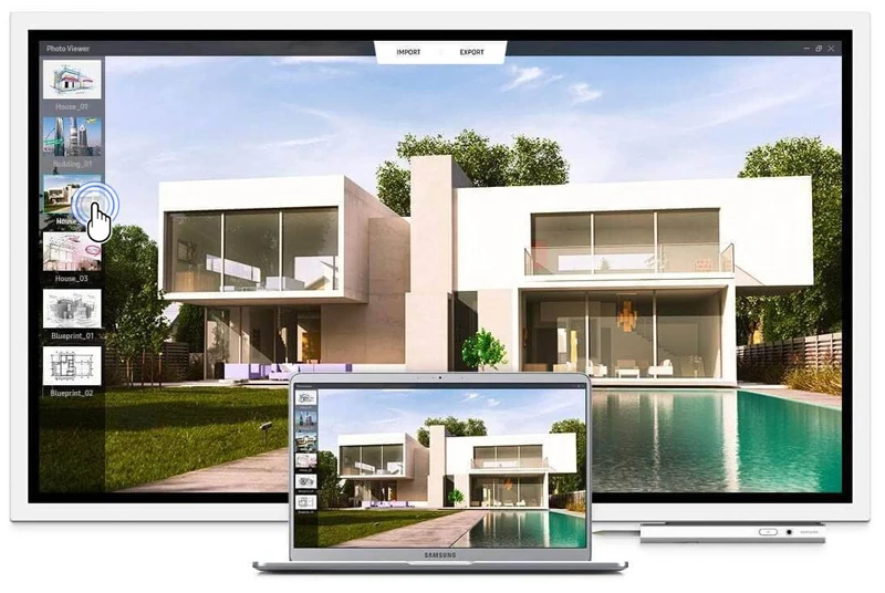 Thông qua khả năng kết nối rộng rãi của Samsung Flip WM55H, bạn và nhóm của mình có thể chia sẻ và tạo các chú thích trong nhiều tệp nội dung khác nhau, tất cả đều được duy trì ở chất lượng hình ảnh tối ưu.