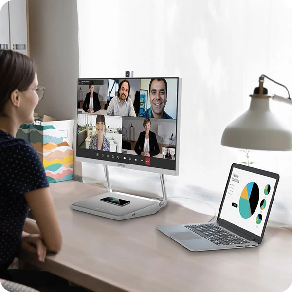 Với tính năng chuyển đổi bằng một nút bấm, Yealink DeskVision A24 đóng vai trò bổ sung là Máy trạm UC – người bạn đồng hành cho năng suất cao nhất. Thông qua kết nối USB-C, nó tăng cường sức mạnh cho máy tính xách tay của bạn với màn hình phụ, cuộc họp BYOD, nguồn PD và các cổng USB bổ sung.