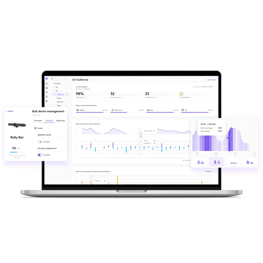 Điều chỉnh các cài đặt từ xa và đẩy bản cập nhật phần sụn tới thiết bị phòng họp để đảm bảo bố cục triển khai của bạn hoạt động ở hiệu suất đỉnh cao.