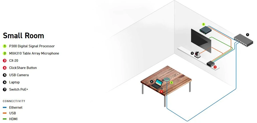 - Tương thích với các thiết bị Hệ sinh thái gốc khác để mở rộng âm thanh trong mọi không gian hội họp