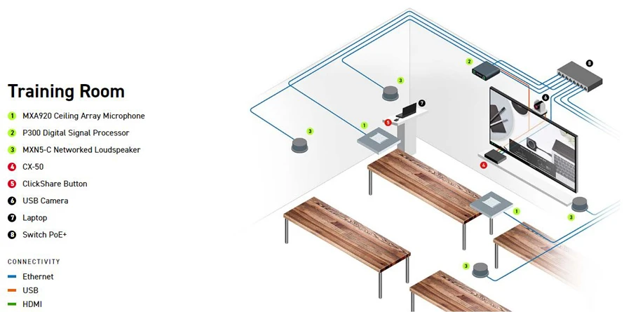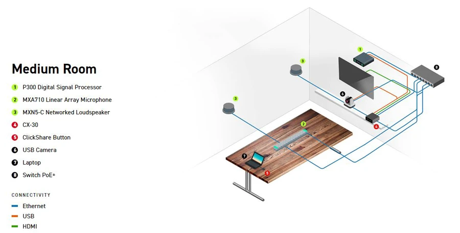 Hệ sinh thái âm thanh Shure cung cấp cho người dùng một loạt các tùy chọn âm thanh linh hoạt và có thể mở rộng để kết nối đơn giản với Barco ClickShare Conference bằng USB.