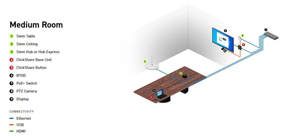 Stem Hub là thiết bị trung tâm liên lạc hội nghị cho phép nhiều thiết bị Stem trong phòng giao tiếp với nhau và hoạt động như một hệ sinh thái.