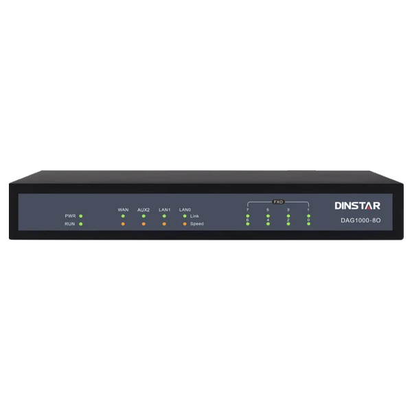 Dinstar DAG1000-8O FXO Analog VoIP Gateway là một loại cổng truy cập cung cấp kết nối liền mạch giữa mạng điện thoại dựa trên IP và điện thoại cũ (POTS) và hệ thống PBX. Gateway analog có 8 cổng FXO và được sử dụng để kết nối với tổng đài analog hoặc đường PSTN của các hãng viễn thông. Với giao thức SIP tiêu chuẩn, nó tương thích với các nền tảng IMS / NGN hàng đầu và các hệ thống Điện thoại IP dựa trên SIP. Nó cung cấp các giải pháp VoIP chi phí thấp và dễ sử dụng cho các doanh nghiệp vừa và nhỏ, trung tâm cuộc gọi, SOHO, các văn phòng từ xa cũng như các doanh nghiệp có nhiều chi nhánh.