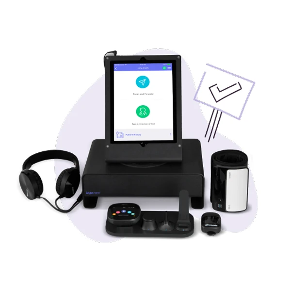 - Ứng dụng dành cho thiết bị di động và bảng điều khiển của bác sĩ lâm sàng để tiến hành khám sức khỏe từ xa, xem xét dữ liệu khám và giao tiếp với bệnh nhân