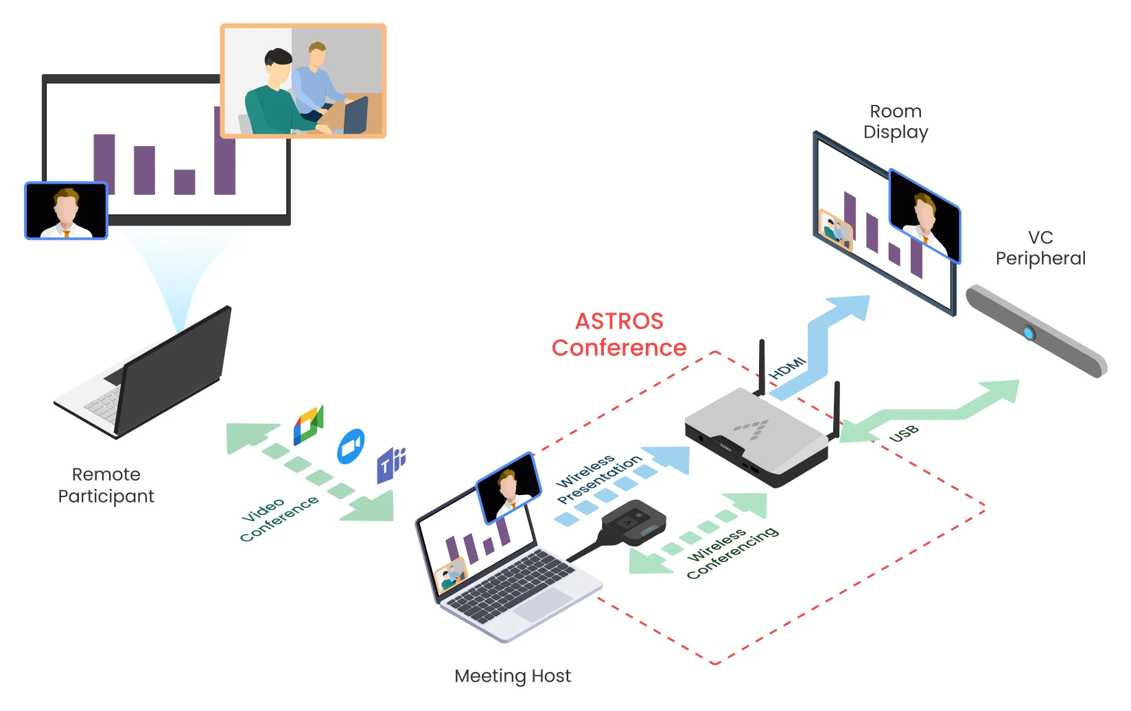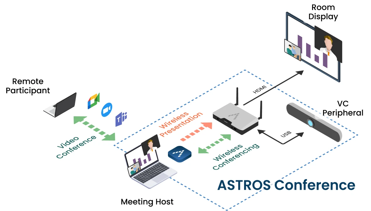 Astros Pod AP2-12 là thiết bị trình chiếu không dây cho phép người dùng chia sẻ màn hình máy tính xách tay với màn hình được kết nối với ASTROS Station (AS-201; AS-101). Thiết bị kết nối qua USB-C và sử dụng Wi-Fi để chia sẻ màn hình không dây. Thiết bị được thiết kế để dễ dàng thiết lập và sử dụng, không cần cài đặt ứng dụng và cung cấp tính năng chia sẻ màn hình chỉ bằng một cú nhấp chuột. Tích hợp đầy đủ 02 tính năng là Wireless BYOD và Wireless BOYM.