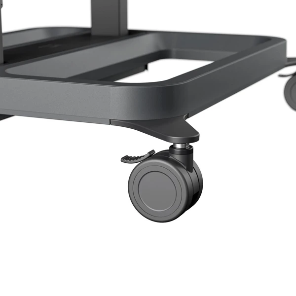 Cấu trúc chân đế được thiết kế để tăng độ an toàn và giúp bạn không bị vấp ngã. Nhờ các bánh xe xoay 100mm chắc chắn, thang máy có thể di chuyển dễ dàng trên mọi bề mặt, cho dù đó là sàn PVC, sàn đá hay thảm dày. Chống va chạm trên thang máy màn hình giúp màn hình và hệ thống không bị hư hại, trong trường hợp có vật cản, thang máy di chuyển ngược chiều.